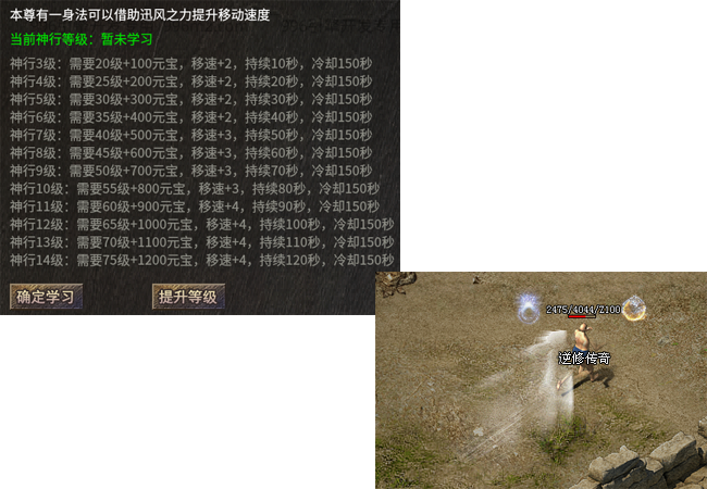 寻找NPC学习被动神行技能,提高移动速度,并且获得影子跟随特效
